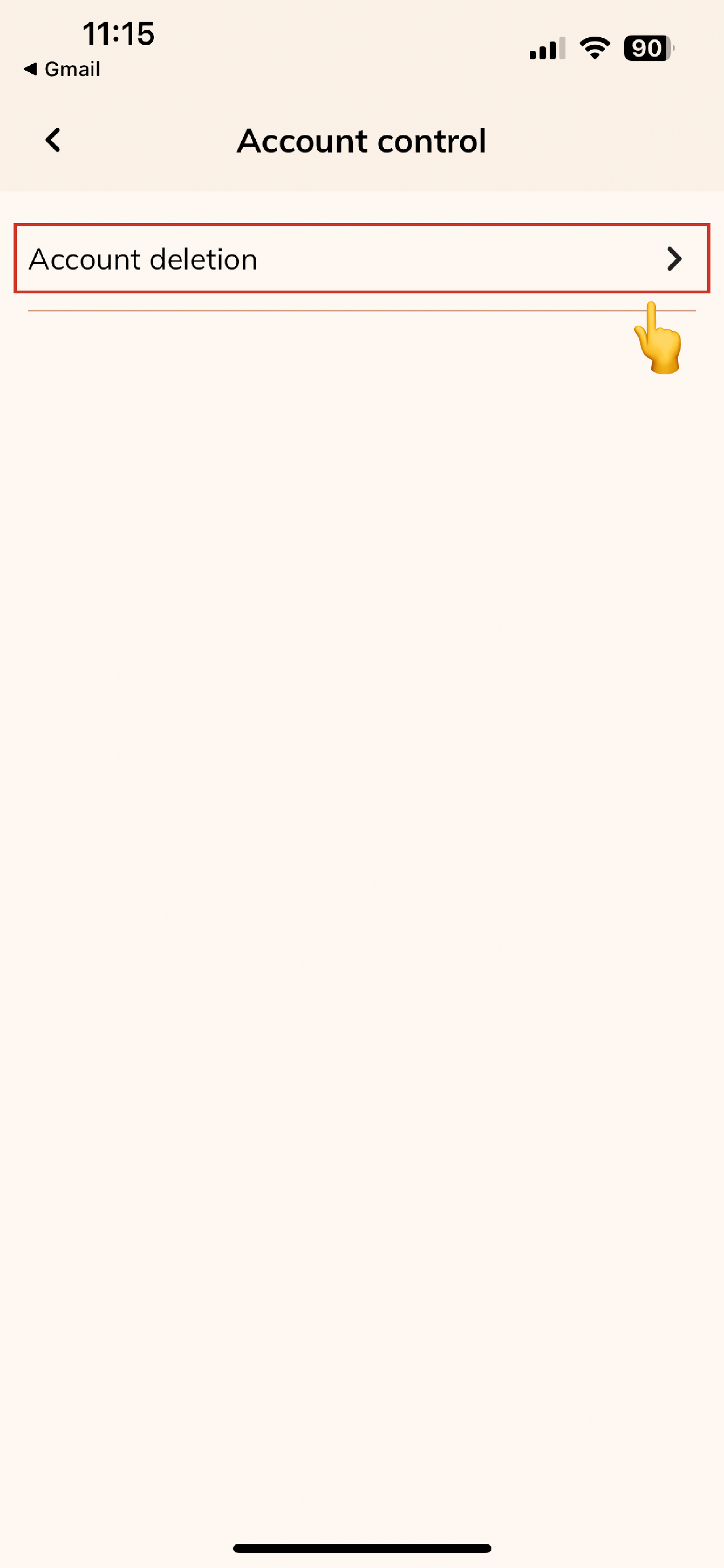 - Scroll down to Account control and click Account deletion