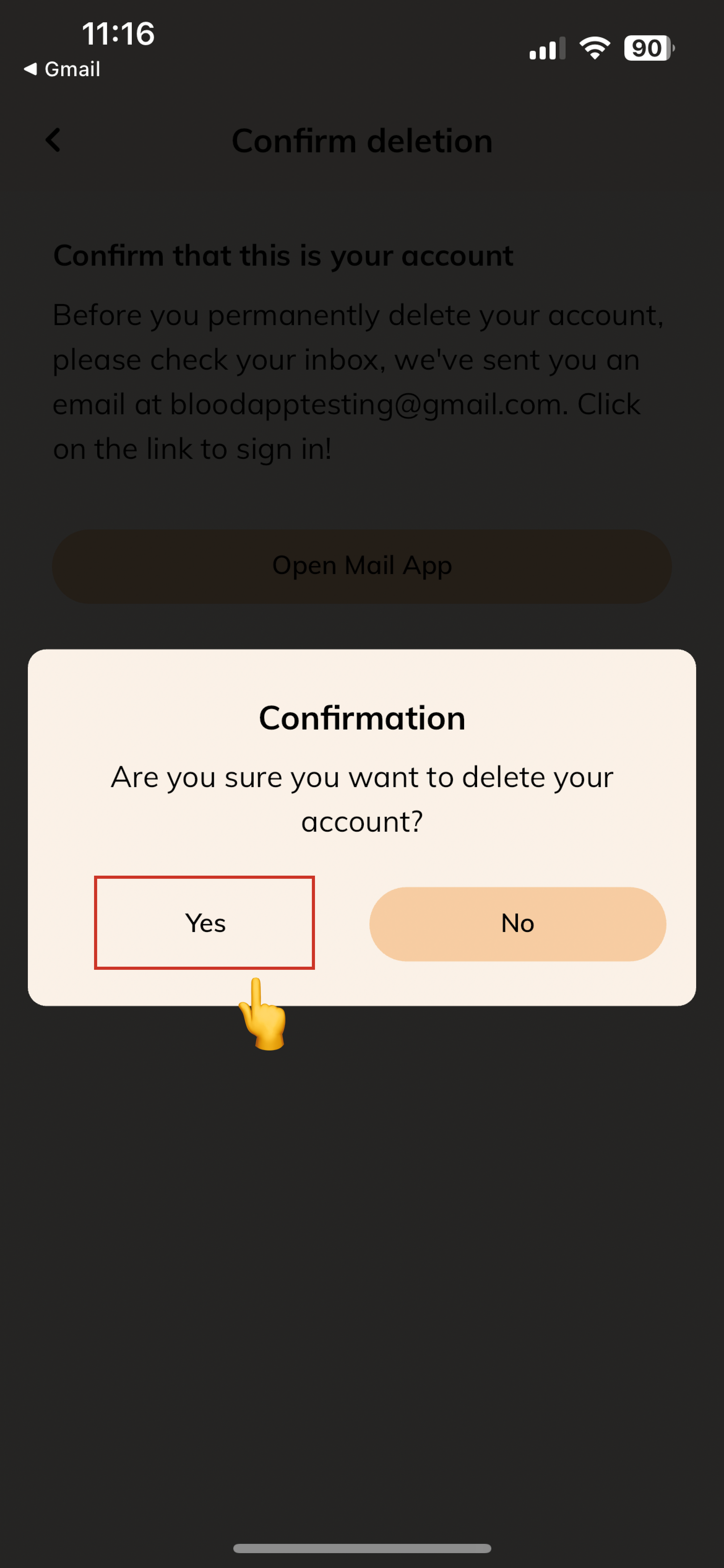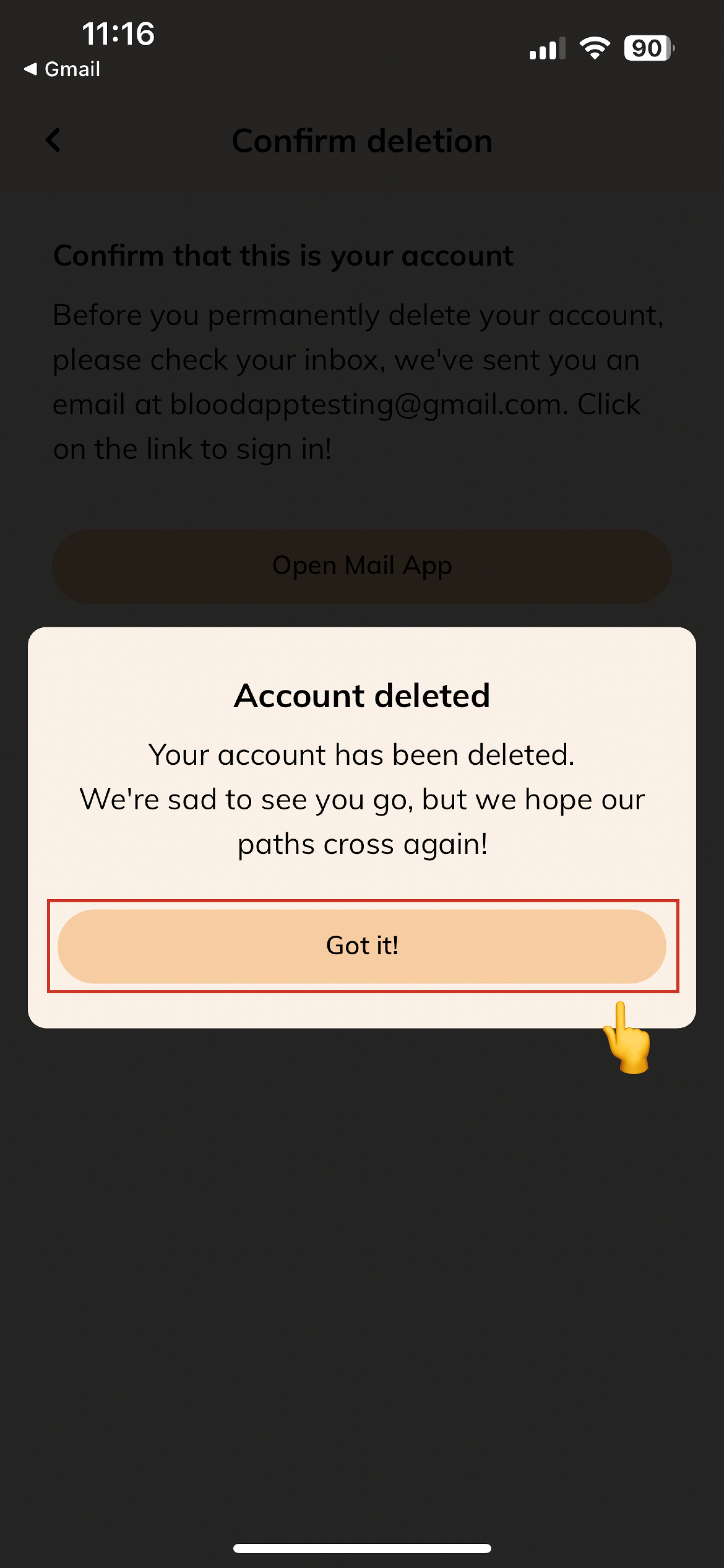 - Once you confirm the email, you will complete the account deletion process